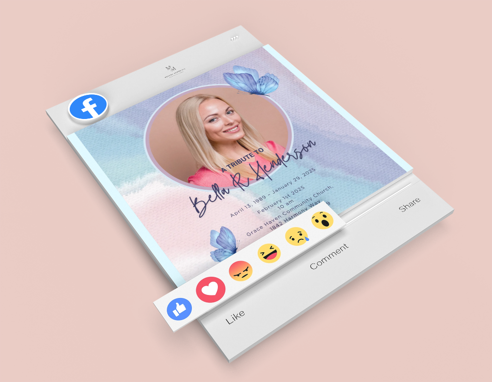 For each theme we have matching funeral announcements. Post on Instagram, Facebook, or send through text to all your friends and family to share details of the memorial.